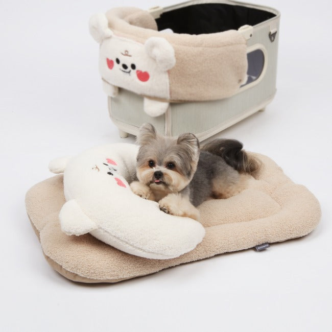 Ritogato Bolppangi Buggy Cover-up Guard 熊仔毛絨絨款寵物推車車墊套裝 - 杏色