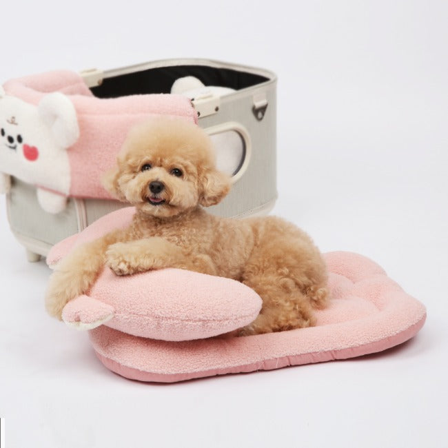 Ritogato Bolppangi Buggy Cover-up Guard 熊仔毛絨絨款寵物推車車墊套裝 - 粉紅色